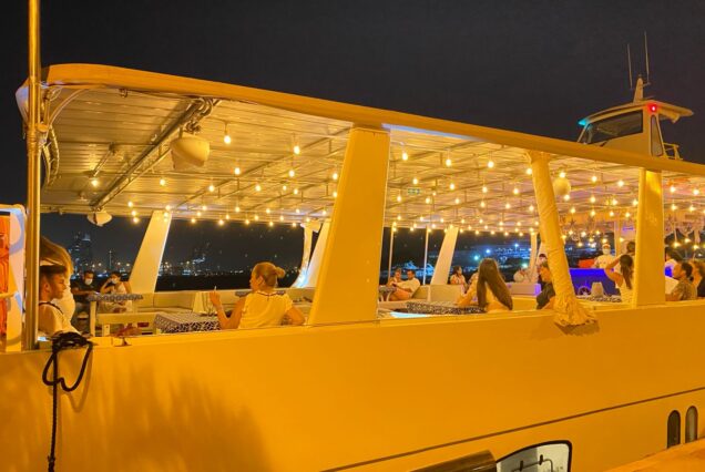 | Noche | Fiesta por la bahía con barra libre (2 horas) y música. |